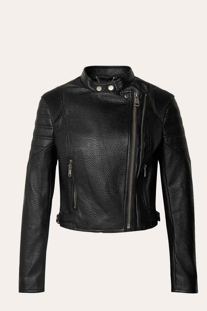 Giacca biker in similpelle Saffiano color nero di Guess, modello W5YL19WHDS0.